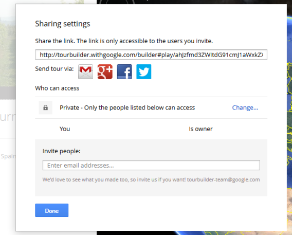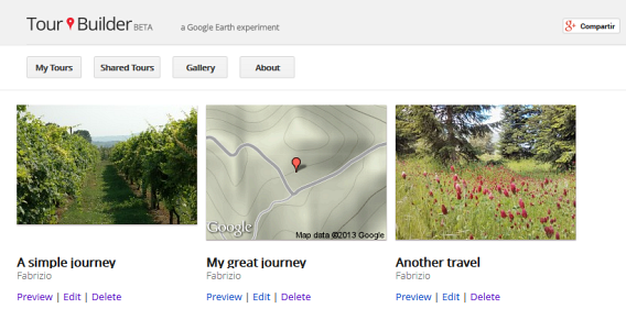 Tour Builder dà a Google Earth una dimensione in più: la possibilità di raccontare i tuoi viaggi per il mondo, aggiungere foto e video e condividere il tuo diario di viaggio sui social network.