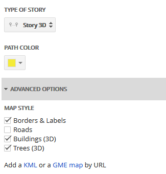 La prefazione è una parte importante di ogni avventura. Lo strumento consente di impostare una foto di copertina e di scrivere una breve introduzione. Nelle opzioni è possibile scegliere il tipo di visualizzazione (2D / 3D), il colore del percorso e quali elementi sono visibili (strade, edifici e così via).