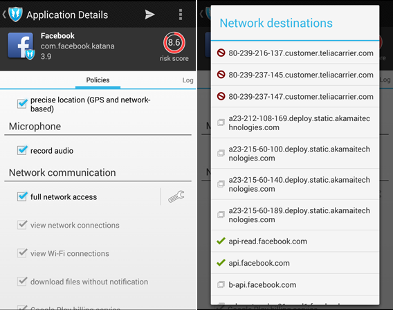 Per fare questo ritorna su AppGuard e apri la vista dettagliata dell’app. Tocca l’icona della chiave inglese, in corrispondenza della voce Accesso alla rete completo. Verrà così visualizzato un elenco degli indirizzi web ai quali l’app ha avuto accesso durante l’utilizzo. Toccando l’indirizzo è possibile sbloccarlo. Toccandolo nuovamente, AppGuard blocca l’accesso futuro allo stesso URL.
